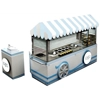 Included in the kiosk are a storage place for materials that do not require refrigeration such as nuts, biscuits, packaging materials etc. and of course a refrigerator for materials that need it such as preparative liquid ice cream material for ice cream rolls etc. for the kiosk we have predicted more position electrical sockets for optional installation of auxiliary equipment, such as mixers, blenders, slush freezer, other ice cream machines etc.